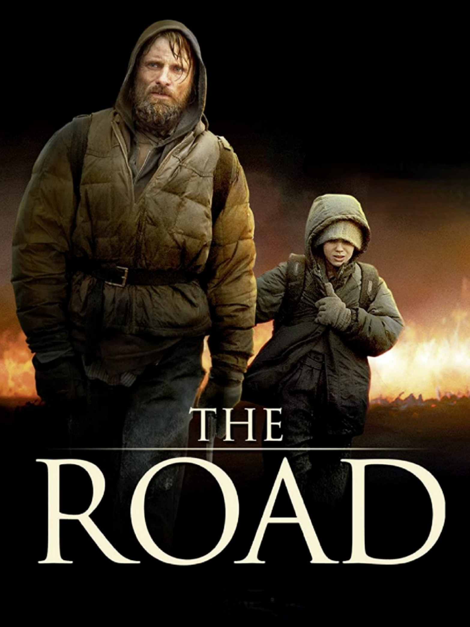 A father and his son walk alone through burned America. Nothing moves in the ravaged landscape save the ash on the wind and water. It is cold enough to crack stones, and, when the snow falls it is gray. The sky is dark. Their destination is the warmer south, although they don't know what, if anything, awaits them there.