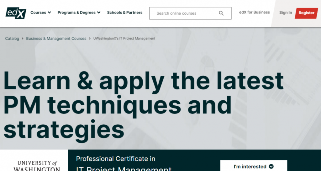 UWashingtonX's IT Project Management Professional Certificate